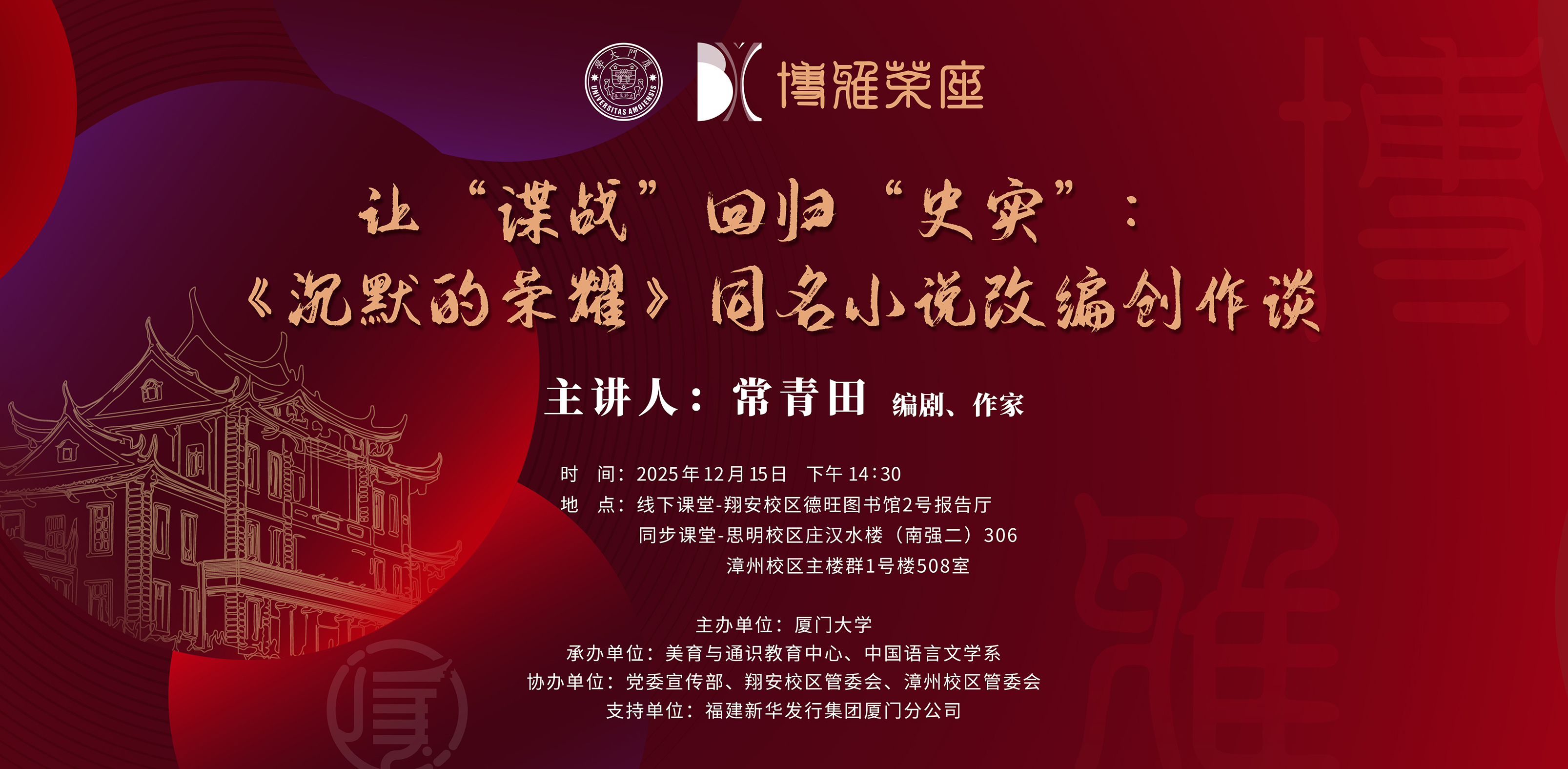 地点:厦门大学思明校区科学艺术中心一楼多功能厅