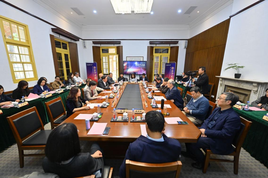 为深入学习贯彻习近平文化思想,推动新时代哲学社会科学持续繁荣,探索中国式现代化背景下新文科建设和厦大中文学科建设,厦门大学首期“鼓浪学术波”活动于2023年12月7日在厦门大学人文与艺术高等研究院(简称“高研院”)拉开序幕。首期“鼓浪学术波”活动以“中文学科建设漫谈”为主题,由高研院主办,厦门大学中国语言文学系协办。中国社会科学院研究员、深圳大学特聘教授高建平,上海交通大学人文学院院长、教授王宁,北京师范大学文艺学研究中心主任、教授王一川,清华大学中国语言文学系教授李守奎,河北大学副校长、教授过常宝,南京大学文学院院长、教授董晓,武汉大学文学院院长、教授于亭等知名学者应邀参会。