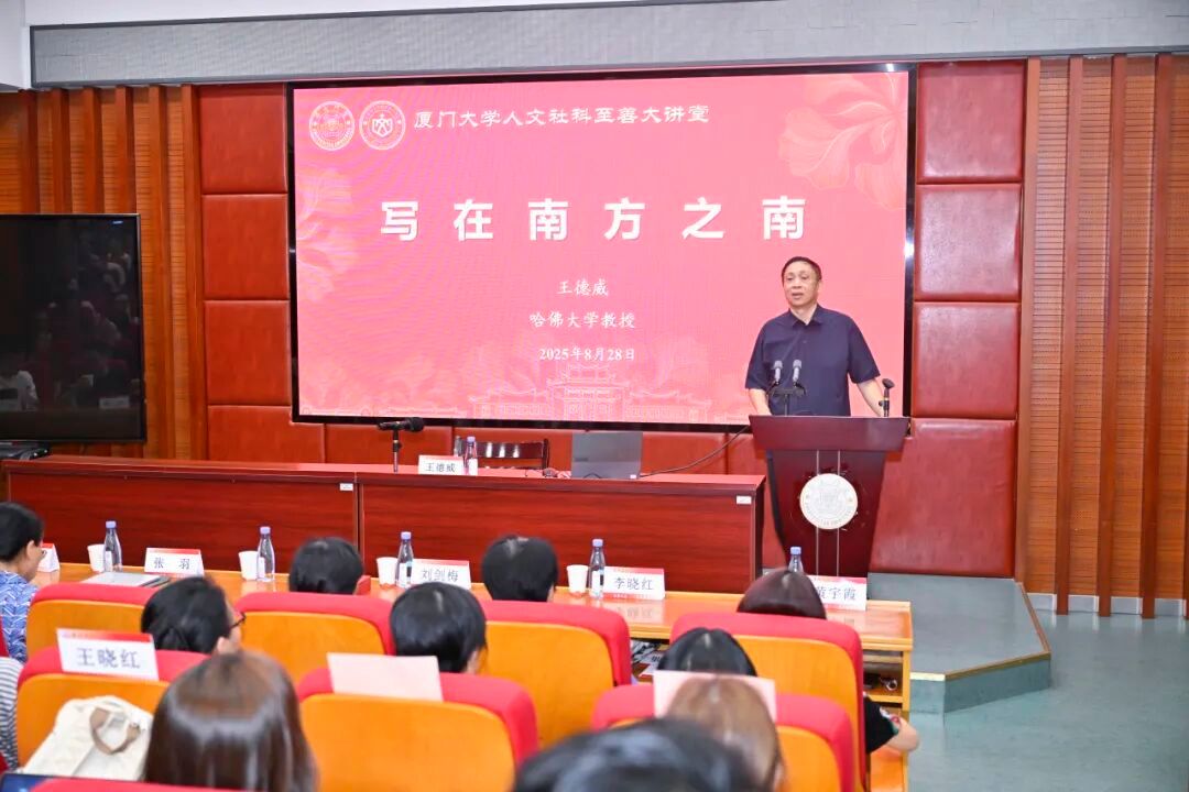 2025年8月28日晚间,哈佛大学东亚系暨比较文学系教授王德威作客厦门大学,开展了一场以“写在南方之南 华夷风土与当代文学”为题的精彩学术演讲。本次讲座系“厦门大学人文社科至善大讲堂”第151讲,由社科处、中国语言文学系、人文与艺术高等研究院共同主办。来自各院系的200余名师生参加讲座,现场座无虚席,学术氛围浓厚热烈。讲座由人文与艺术高等研究院执行院长邹振东教授主持。