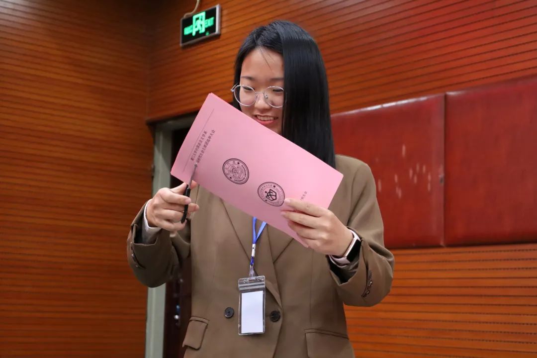 大会第七项议程,总计票人李潇扬宣读《计票结果报告单》,公布厦门大学中国语言文学系第一届研究生会主席团选举计票结果及当选名单,最终确定中国语言文学系第一届研究生会主席团名单为:李东育、张鸿、梁锐。