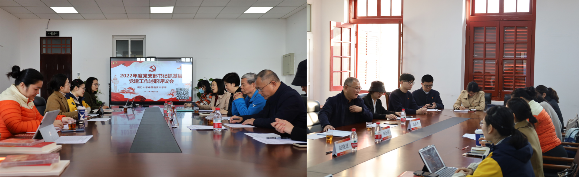 2月23日下午,厦门大学中国语言文学系召开2022年度党支部书记抓基层党建工作述职评议会。学校基层党建联络员陈正国、学生工作部(处)副部(处)长赵晓慧,系党委书记高忠华、党委副书记葛学凤、辅导员、党务秘书、党支部书记和党员代表参加了本次会议。