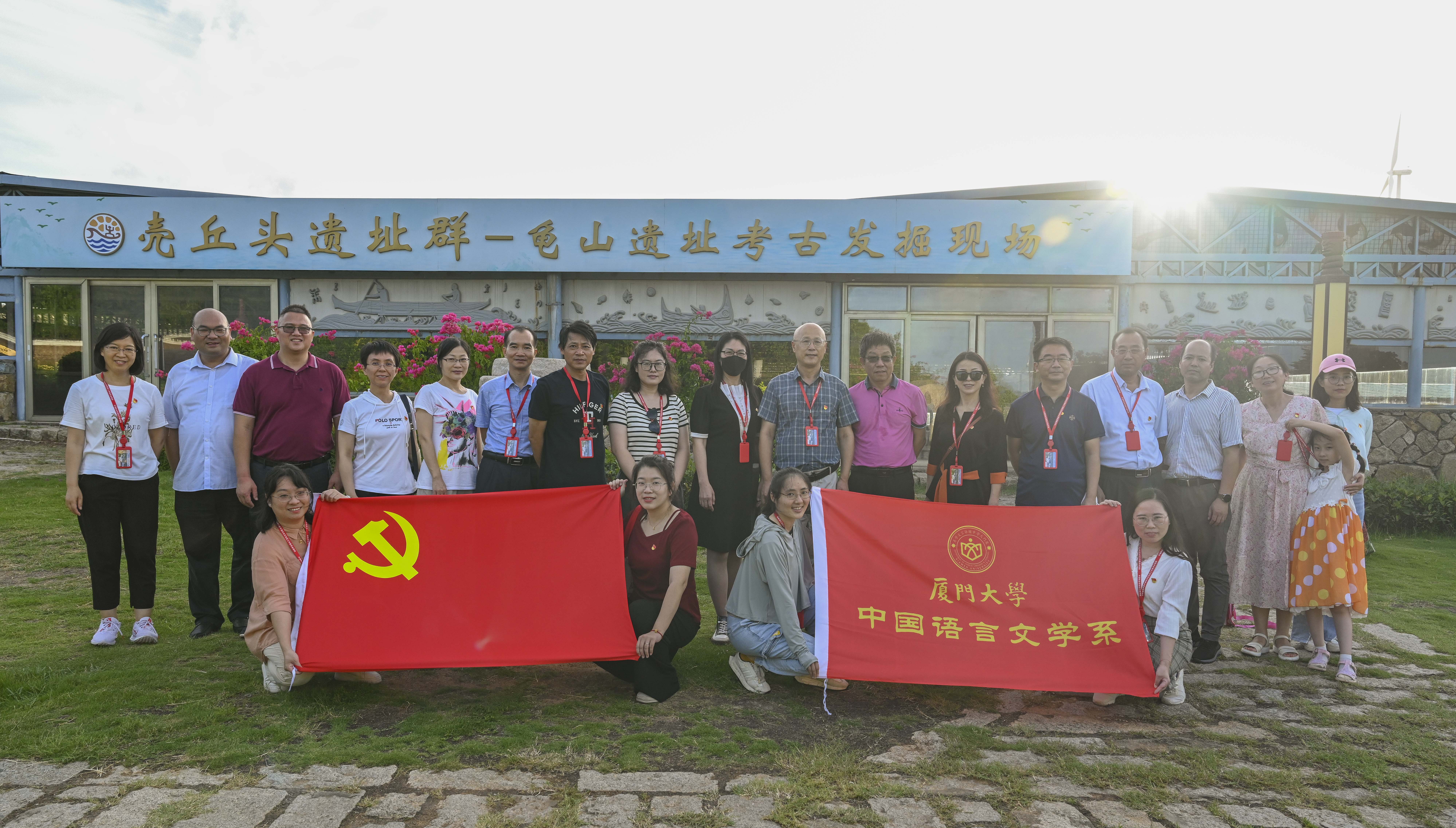 为庆祝中国共产党成立102周年,深入开展学习贯彻习近平新时代中国特色社会主义思想主题教育,把“学思想、强党性、重实践、建新功”的总要求贯穿始终,推动党建与事业发展深度融合,实现党建优势互学互补,7月1日,中国语言文学系教工党支部赴平潭与平潭综合实验区融媒体中心第二党支部开展联学共建活动。厦门大学中国语言文学系教工党支部和办公室党支部党员、平潭综合实验区融媒体中心第二党支部和第一党支部党员共同参加活动。