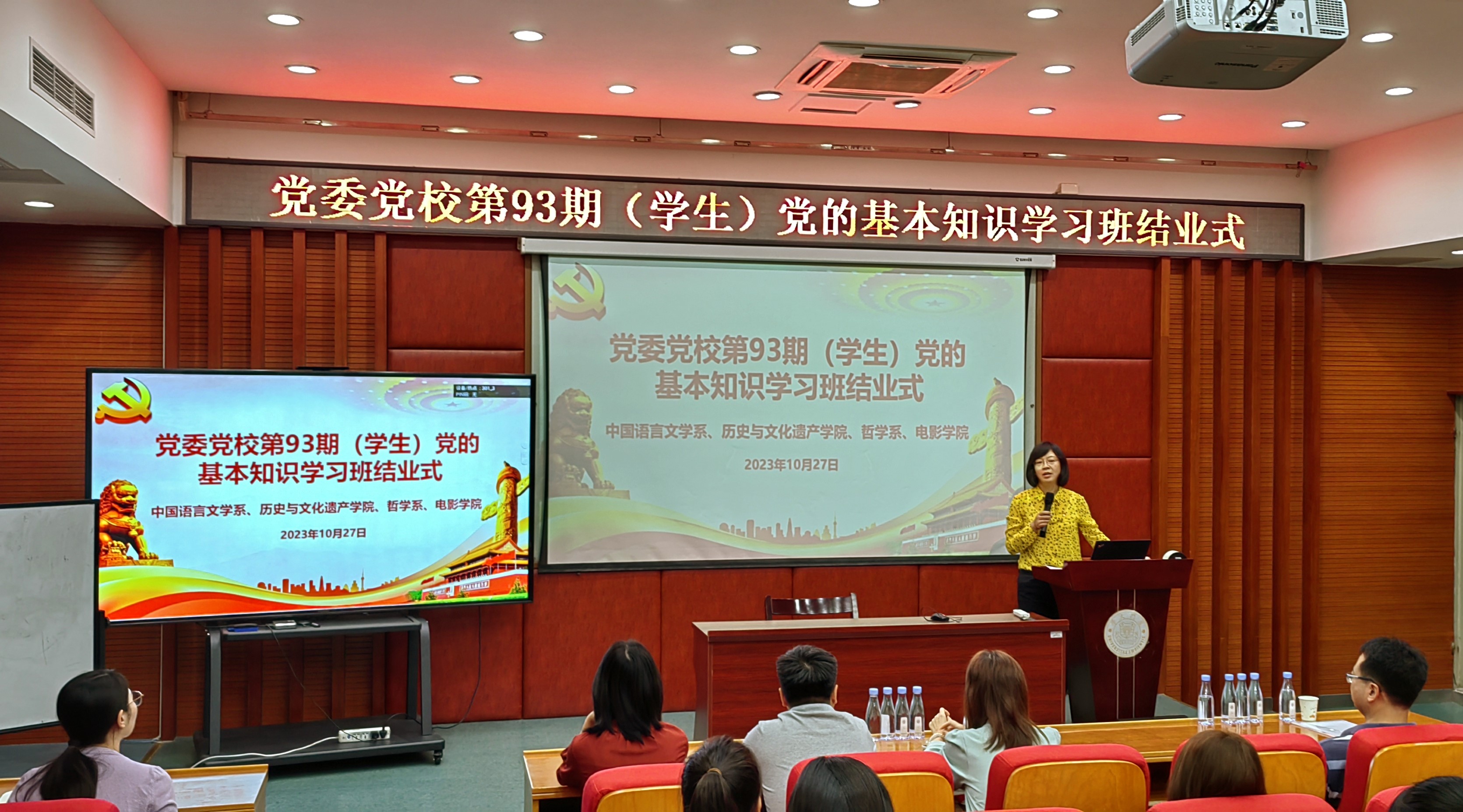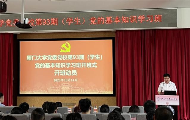 由厦门大学中国语言文学系、历史与文化遗产学院、哲学系、电影学院联合承办的厦门大学党委党校第93期党的基本知识学习班于10月14日至10月27日顺利举办,37名学员经过7场专题党课学习、2次小组讨论提升和在线考试测评,圆满完成学习任务并顺利结业。