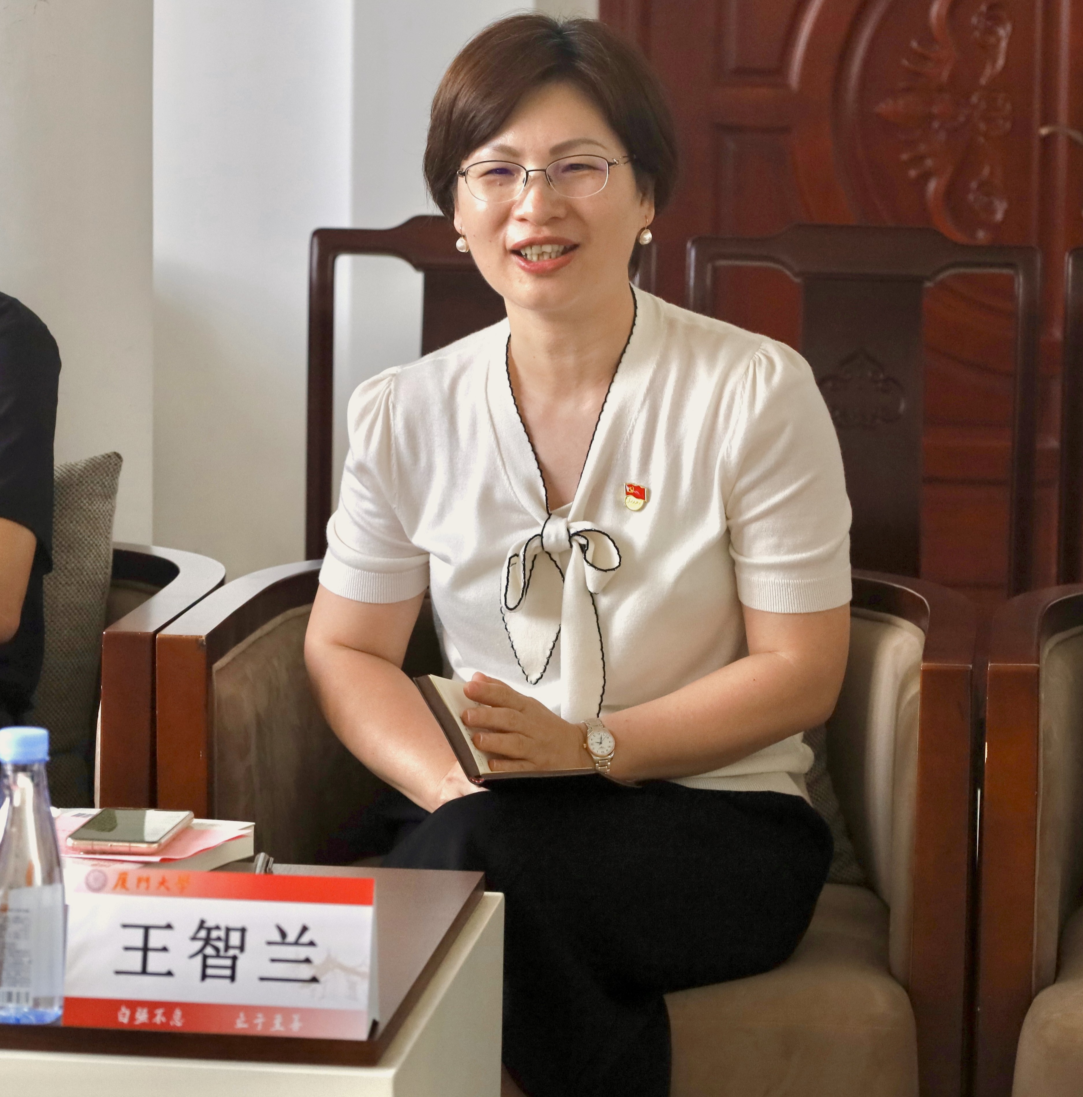王智兰在讲话中讲述本次共建活动的背景、目标、意义,并提出推进共建活动的意见和建议。她表示,今年是纪念陈嘉庚先生诞辰150周年,校友总会秘书处党支部与中国语言文学系硕士生第二、三党支部开展师生党支部联合共建,旨在充分挖掘、广泛传播陈嘉庚先生的人生故事,大力弘扬、深入践行陈嘉庚先生的崇高精神。她希望双方支部党员通读《陈嘉庚传》,深刻感受校主倾资办学的艰苦、艰辛和坚定;进行延伸阅读和学习,更深入体会厦大百年文化底蕴;通过此次支部共建能够面向全体厦大人推出系列优秀作品。