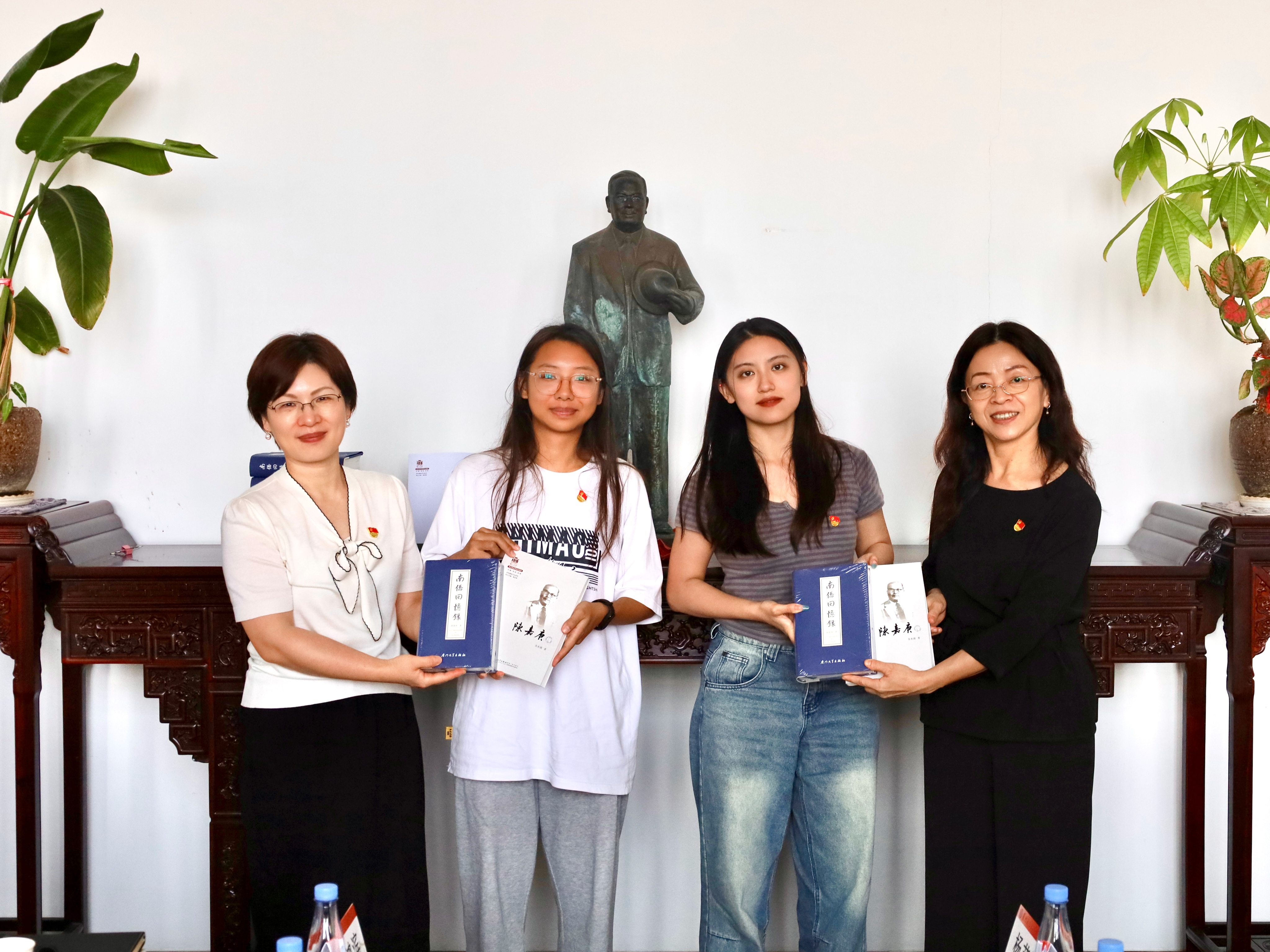 王智兰、黄宇霞共同为中文系硕士生第二、三党支部赠送书籍《陈嘉庚传》《南侨回忆录》。