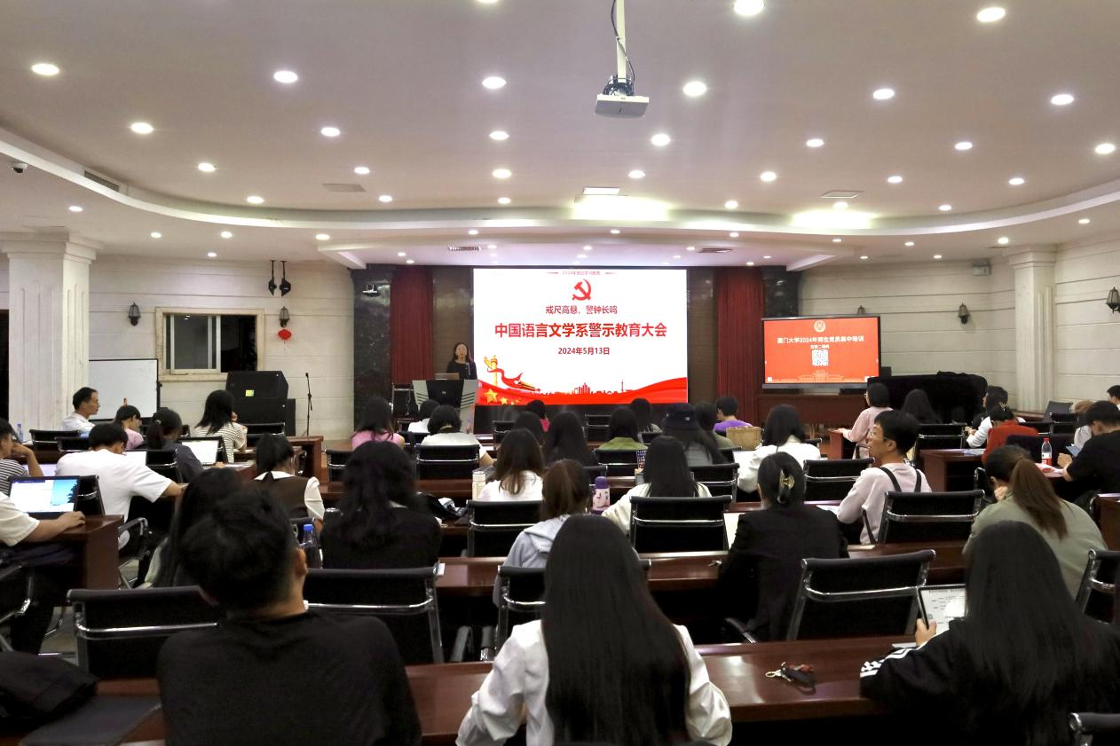 5月13日下午,中国语言文学系召开党纪学习教育警示教育大会,系党委书记黄宇霞主持会议并开展警示教育。系党政班子成员、全系师生党员参加会议。