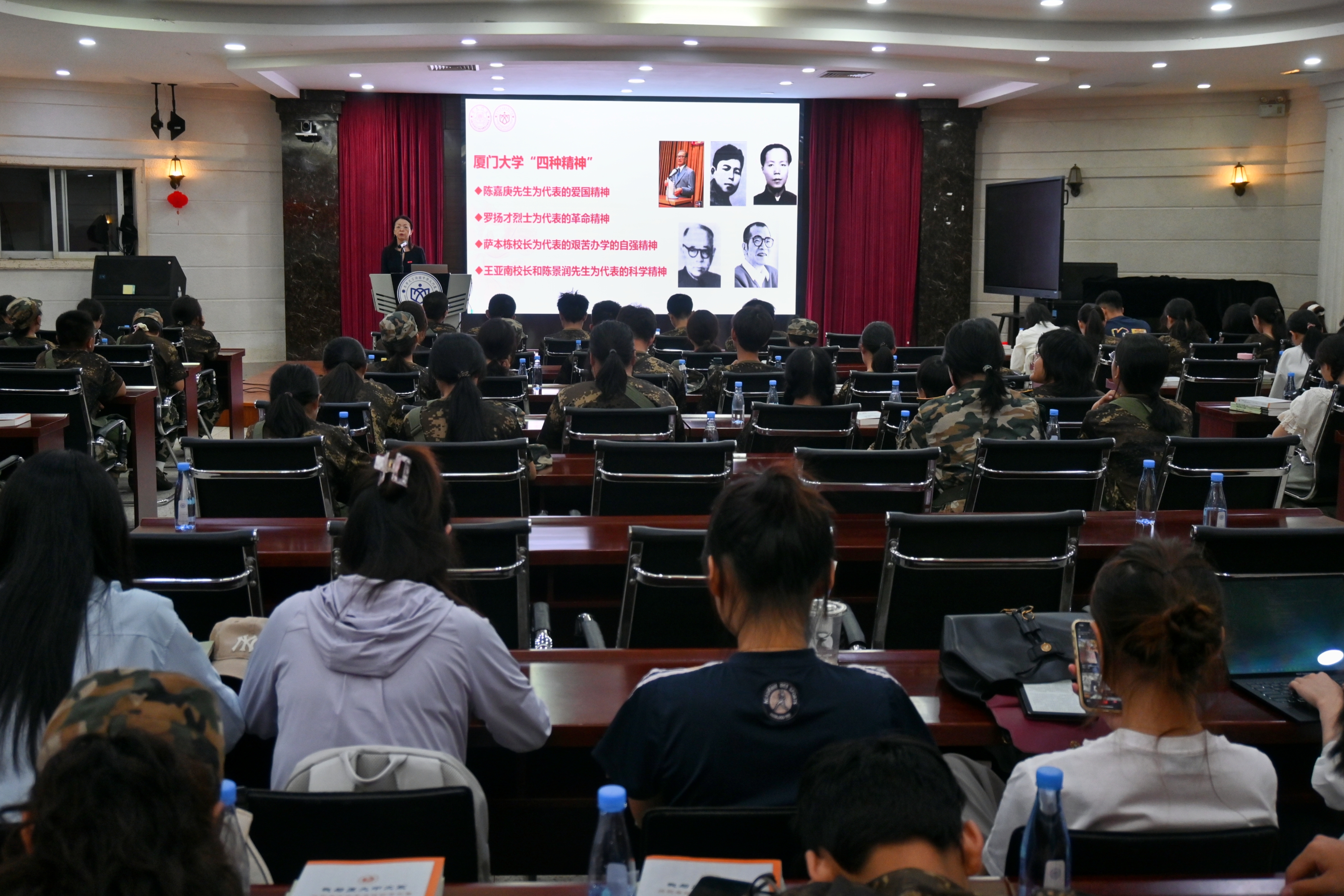 黄宇霞以《赓续百年文化,传承四种精神》为题,从回望历史、新的征程、四种精神三个维度,系统地介绍了厦门大学百年光辉历程与光荣传统,向同学们讲述厦门大学中文系悠久的历史与深厚的积淀,勉励新生们勤勉学习,自强不息,展示南强学子风采。