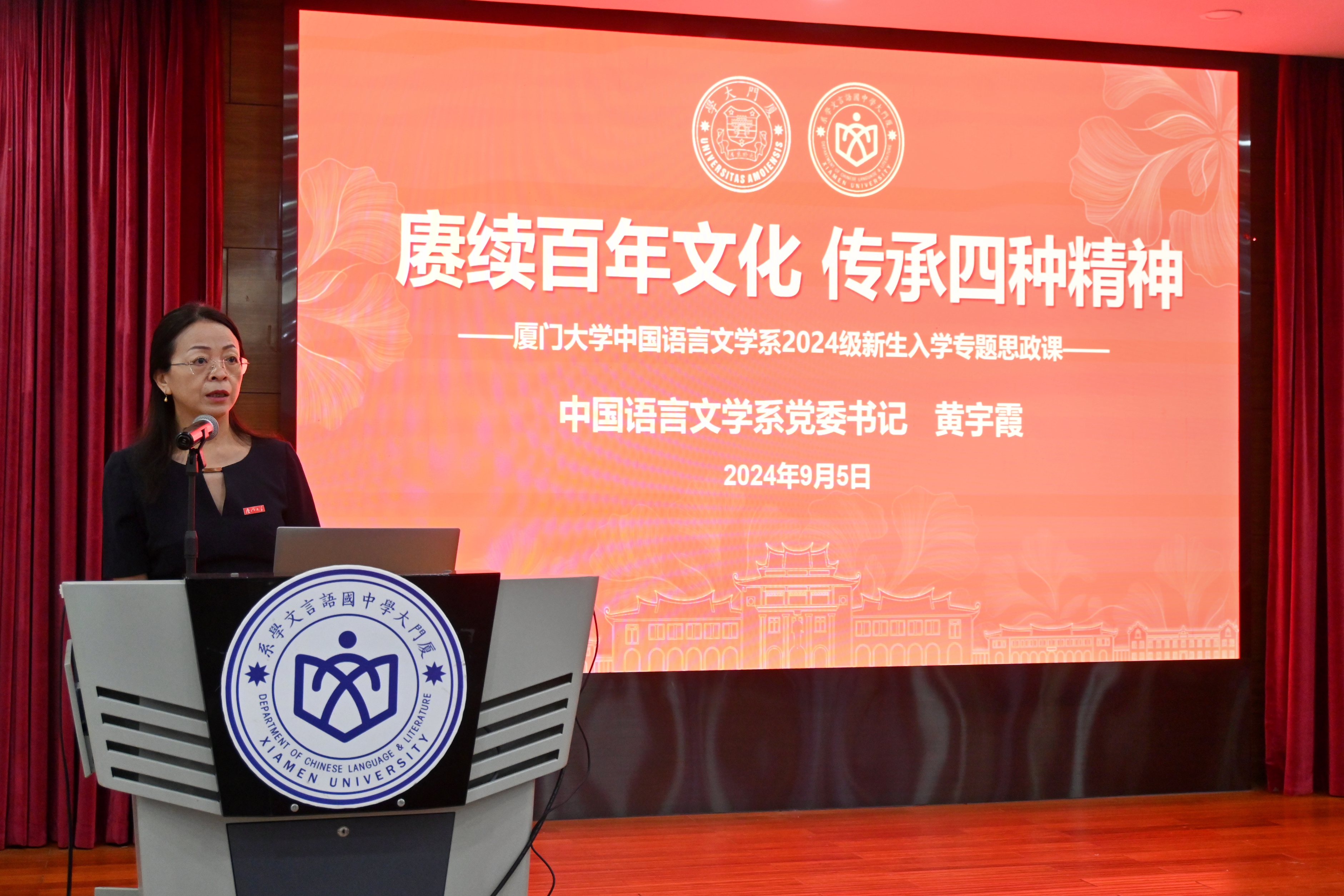 9月5日上午,厦门大学中国语言文学系举行2024级新生入学专题思政课,中国语言文学系党委书记黄宇霞为2024级本、硕、博新生讲授入学“第一课”。