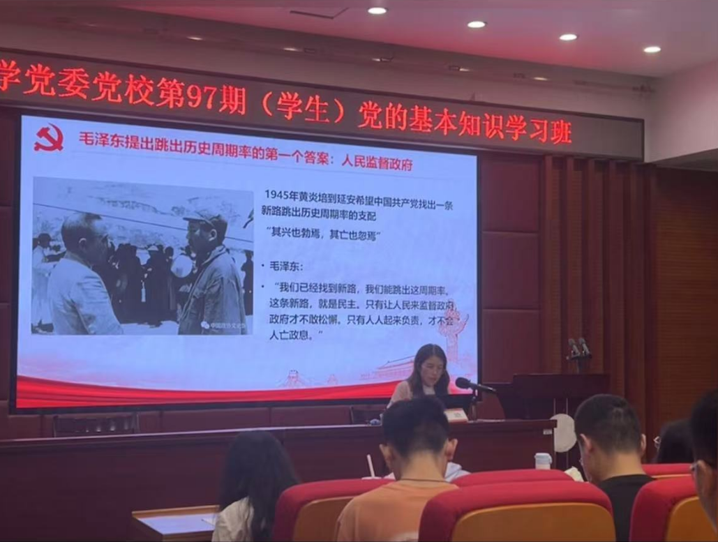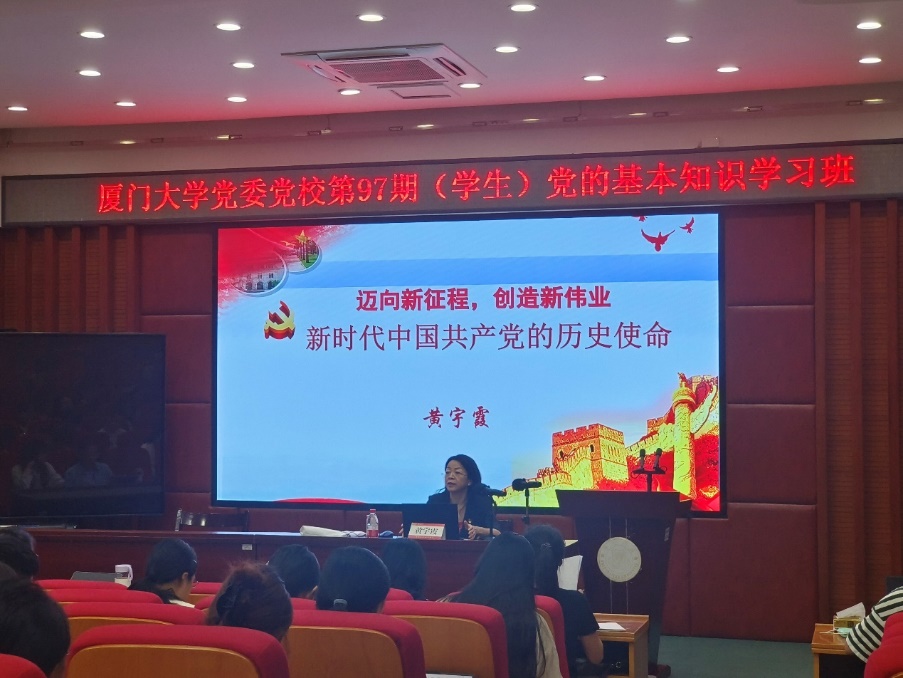 随后,中国语言文学系党委书记黄宇霞以“中国特色社会主义进入了新时代”“新时代中国共产党的历史使命”“党的历史使命与青年人的责任担当”这三个紧密相连的部分为架构,对新时代的内涵进行了全面而深入的剖析。在授课过程中,黄宇霞老师运用通俗易懂的语言,将新征程上党的使命任务生动地展现在学员们面前。