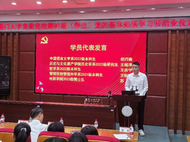 11月1日下午,厦门大学第97期党的基本知识学习班结业仪式在南光一101举行。