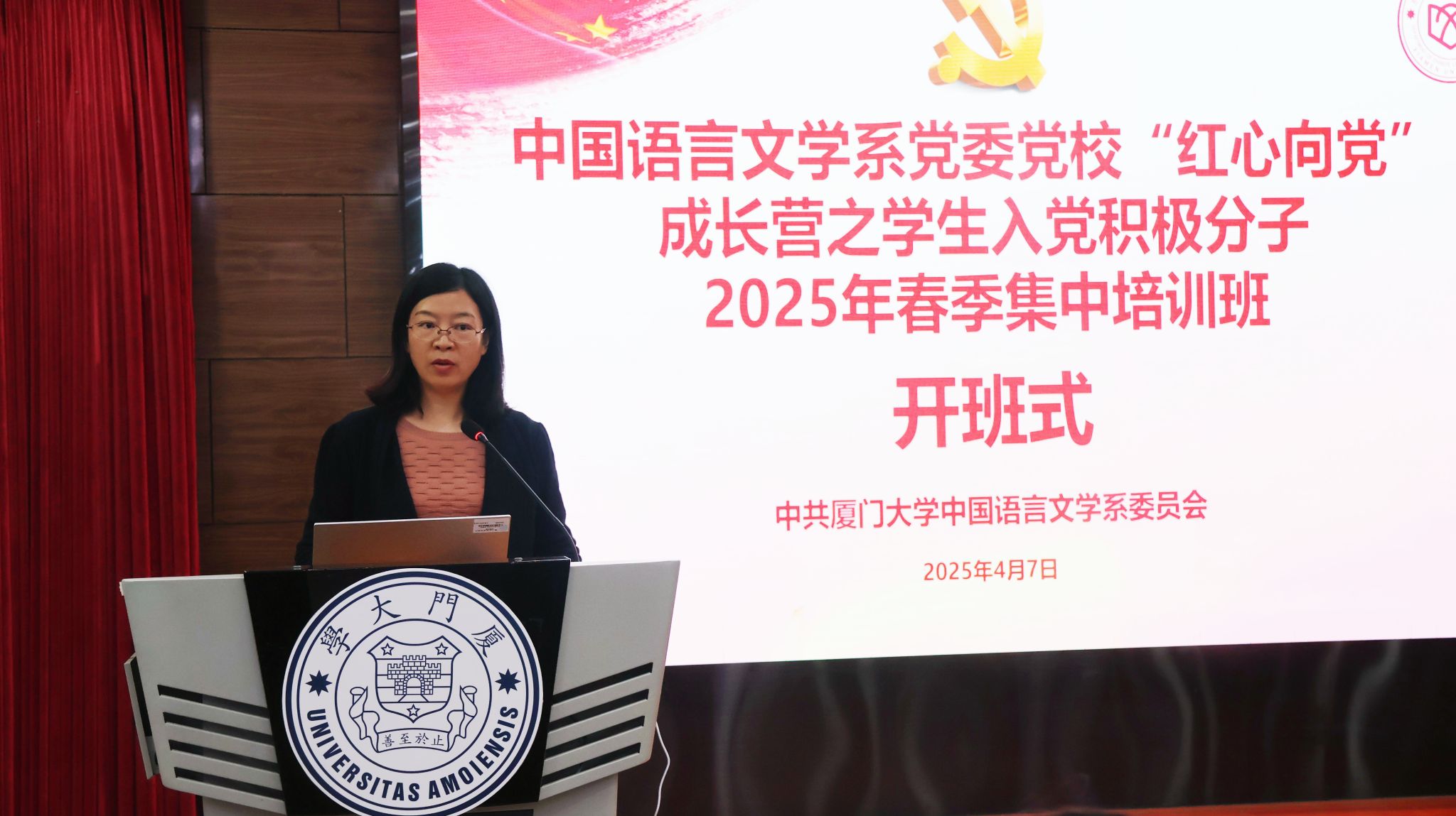 为深入学习贯彻习近平新时代中国特色社会主义思想,贯彻落实党的二十届三中全会精神和全国教育大会精神,进一步提高入党积极分子的思想政治素质和理论水平,端正入党动机,坚定理想信念,4月7日下午,中国语言文学系党委党校举办“红心向党”成长营之学生入党积极分子2025年春季集中培训班开班式。中国语言文学系党委副书记葛学凤、教学秘书韩璟、党务秘书蔡伦和全体学生入党积极分子参加了开班式。