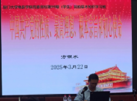 2025年3月15日上午,厦门大学党委党校举行第 99 期(学生)党的基本知识学习班开班式,校党委党建办主任兼组织部副部长、教师工作部副部长葛郝锐出席并作开班动员报告。中国语言文学系、历史与文化遗产学院、哲学系及电影学院的学员们齐聚在南光一101教室,线上参加开班仪式。校党委组织员兼党建办副主任陈秋虹主持开班式。
