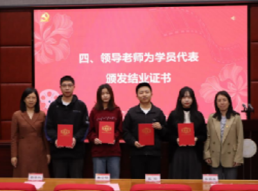中国语言文学系陈淏、历史与文化遗产学院赵钰洁、哲学系蒋阳杨、电影学院杨源昊作为学员代表分享了本次党校学习期间的所思所感,呼吁大家在今后的学习生活中,牢记党员的义务和权利,以实际行动争取早日加入中国共产党。