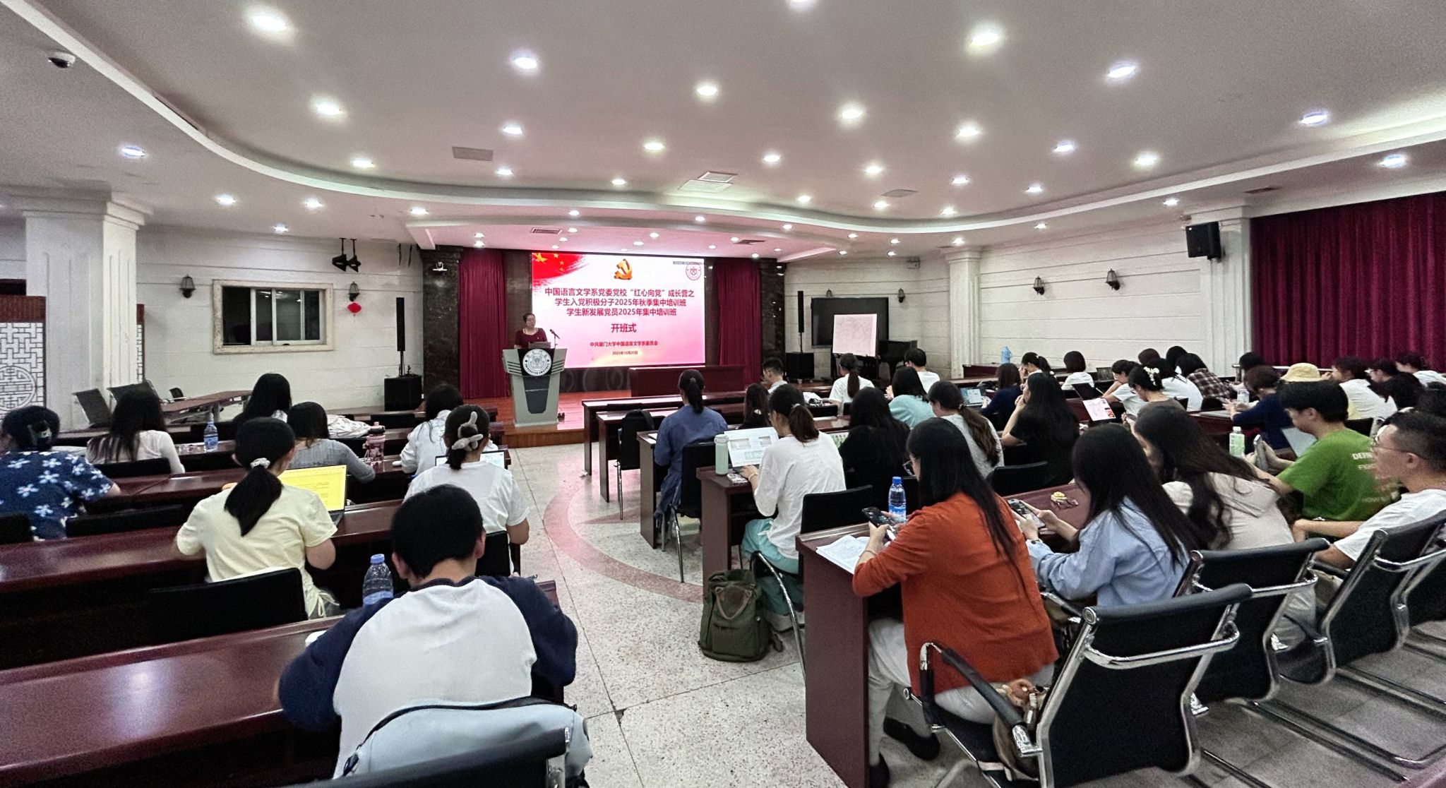 为深入学习贯彻习近平新时代中国特色社会主义思想,贯彻落实党的二十大和二十届二中、三中全会精神以及全国教育大会精神,进一步提高入党积极分子、预备党员的思想政治素质和理论水平,端正入党动机,坚定理想信念,10月20日下午,中国语言文学系党委党校“红心向党”成长营之学生入党积极分子2025年秋季集中培训班、学生新发展党员2025年集中培训班开班式在联兴楼104顺利举行。