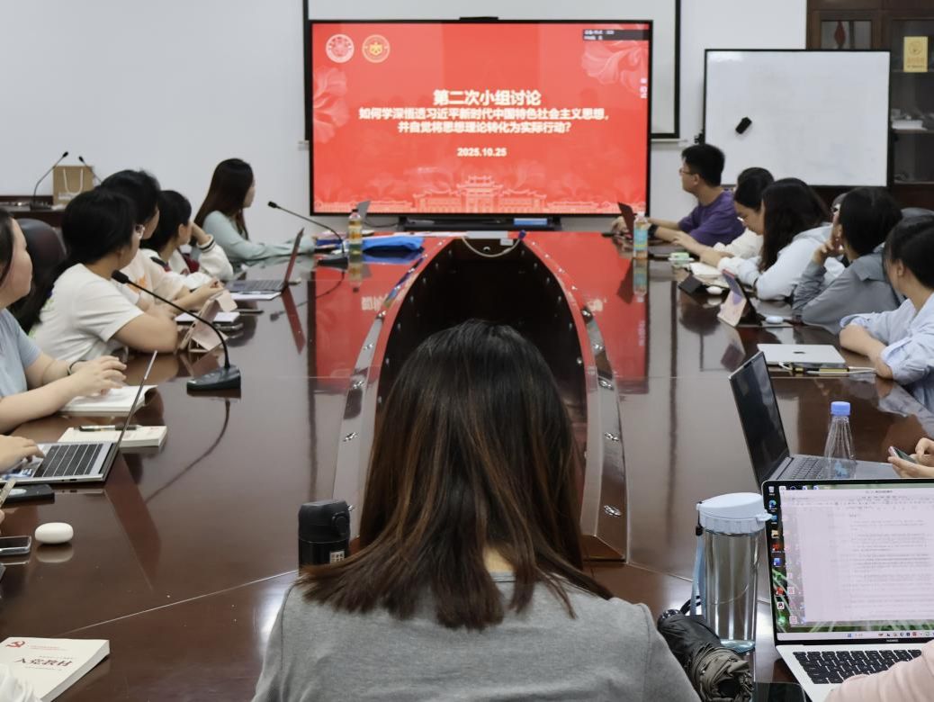在课堂理论学习之外,带队老师组织学员开展讨论。学员们结合自身的学习与成长经历,围绕“如何深入学习贯彻党的二十大精神,在中国式现代化进程中贡献青春力量?”以及“如何学深悟透习近平新时代中国特色社会主义思想,并自觉将思想理论转化为实际行动?”的主题,从不同的角度开展了积极热烈的讨论。学员们经过讨论一致认为,我们要坚定不移地听党话、跟党走,夯实理论基础,做到知行合一,把“小我”融入“大我”,在民族复兴的伟业中书写壮丽篇章。