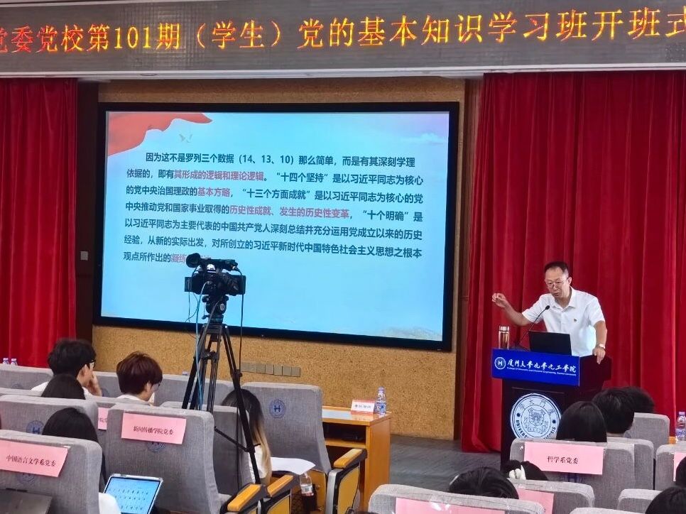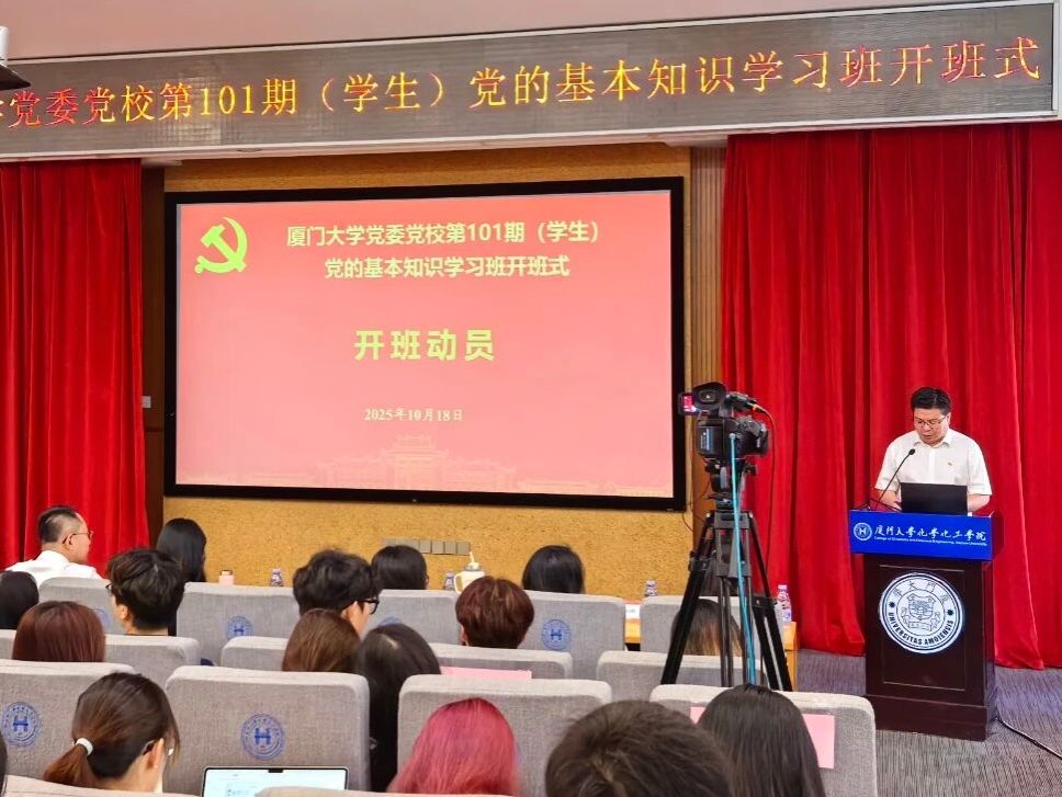 10月18日至10月31日,由中国语言文学系、历史与文化遗产学院、哲学系、电影学院联合承办的厦门大学党委党校第101期(学生)党的基本知识学习班顺利举办。54名学员经过9场专题党课学习、2次小组讨论提升和在线考试测评,圆满完成学习任务并顺利结业。