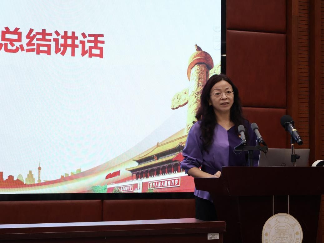 黄宇霞就本期党校学习班学习作总结讲话。她首先祝贺学员们完成党校学习,感谢老师和学员们的共同努力,同时对全体学员提出要求:加强理论学习,树立终身学习的观念;端正入党动机,深刻理解“为人民服务”的观念;不断提升自我,既仰望星空又脚踏实地,为中华民族伟大复兴贡献青春力量。