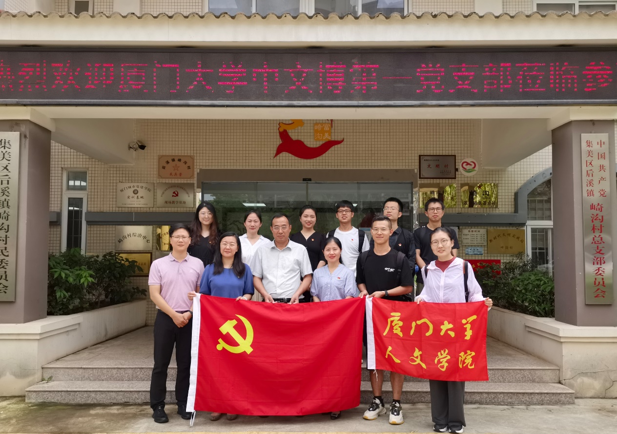 为深入学习贯彻党的十九大和十九届历次全会精神,引导支部党员在实践中认真领会党的创新理论最新成果,6月18日上午,中文系博士生第一党支部展开“寻‘红色崎迹’,看乡村治理”固定党日+活动,参访集美区后溪镇崎沟村,实地考察厦门市农村建设新貌。本次活动由学院党委委员、中文系教工党支部书记王烨教授、人文学院团委书记、中文系博士生第一党支部书记王旖旎老师带队,9位党员同志参与。学习团一行得到崎沟村党总支书记、村委会主任王惠燕、厦门市水利局选调生、崎沟村村民委员会主任助理张经洪与村“两委”的热情接待。