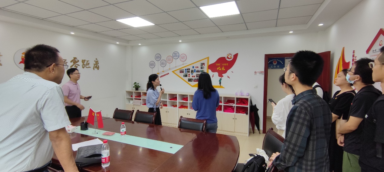 上午十点,崎沟村书记王惠燕同志首先向支部成员介绍了岐沟村的基本情况,并带领大家参观村部党群活动服务中心。崎沟村是集美区仅有的两个革命老区基点村之一,也是厦门城市党建学院指定的学习基地。随着厦门推行跨岛发展战略,集美新城加速成长,靠近厦门北站、软件园三期的崎沟村也有了腾飞式巨变。安置房小区环境优美,离小区不远处就有BRT、地铁,交通方便;医院、学校、商场、健康步道陆续建成投用。崎沟村作为中远期拆迁村,也同样面临着外来人口远超于本地人口,城市规划客观矛盾,疫情常态化管理下村部工作人手不足等问题。王惠燕同志就集体经济发展、村容村貌建设、乡村治理和村党总支建设情况以及崎沟村的发展规划为内容,分享了岐沟村的经验和做法。王旖旎老师根据崎沟村的实际情况,就村校共建共享、基层党建品牌建设、红色题材文本创作、宣讲志愿服务等内容,与村“两委”深入讨论,初步达成合作意向。在参访中,王惠燕书记讲述了中共闽中岐沟中队18名游击队员解放集美、为革命事业做出贡献的故事,王惠燕书记说,岐沟村目前正在打造以岐沟村党群活动服务中心、新加坡第五任总统王鼎昌祖屋、中共岐沟支部旧址为主要学习参观点的红色岐沟路线。