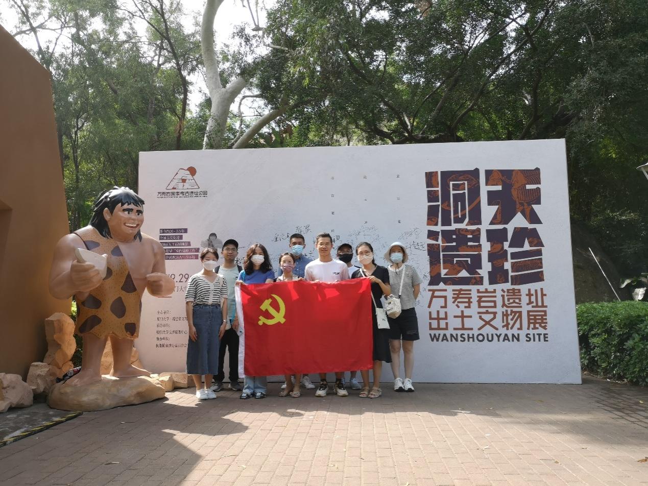 厦门大学人类博物馆由林惠祥先生创办并捐赠毕生收藏的文物,是我国第一家专业性的人类学博物馆。在讲解员的带领下,支部成员们观看了史前石器、史前陶器、青铜器、玉器、东南瓷器、文房书画、唐三彩等不同类别的器物以及闽南地区、台湾高山族文物和服饰,并且在参观中了解了古代文化和民间信仰。参观之际,正值“洞天遗珍——万寿岩遗址出土文物展”在人类博物馆开展。万寿岩遗址是中国南方典型的洞穴类型旧石器时代文化遗址,它的发现把福建有人类活动的历史提前到18.5万年前。2001年1月,时任福建省代省长的习近平同志作出批示,将万寿岩从开矿的炸药包下抢救出来,使得随后的考古发掘工作和研究得以进行。通过实物、图片和讲解,支部成员们了解了万寿岩遗址出土石器的作用、遗址文化层的价值以及该遗址对闽台两岸史前文化渊源研究的重大意义。