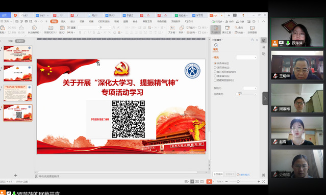 最后,王炳华书记对此次学习活动进行了总结。他提出,疫情期间的感人事迹数不胜数,而这些事迹中出现的最多身影是我们的“90后”,说明“90后”是完全可以信任的,能够担当的。青春是用来奋斗,每一位青年人都可以做出自己的成绩。王炳华书记还关照了每一位党员的学习生活情况,希望大家做好安全防护工作,也表达了希望能早日在学校见到大家的期望。