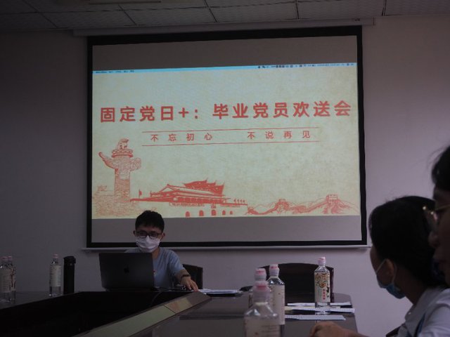 听完毕业生党员同志们真诚的分享以及对学弟学妹们给予的学业与生活上的建议后,在场的同志们都颇为感动。在主持人的带领下,大家将会前精心准备的礼物传递给他们,支部群里也响起了祝福接龙。随后,全体党员还一起合唱了张震岳的《再见》,欢送会达到高潮。