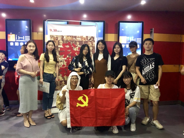 为庆祝新中国成立70周年,加强党支部爱国主义教育,弘扬爱国主义精神,结合学院“不忘初心、牢记使命”主题教育, 9月29日晚上,中文系硕士生第三党支部组织支部党员前往观看影片《我和我的祖国》,开展“我和我的祖国” “固定党日+”活动。
