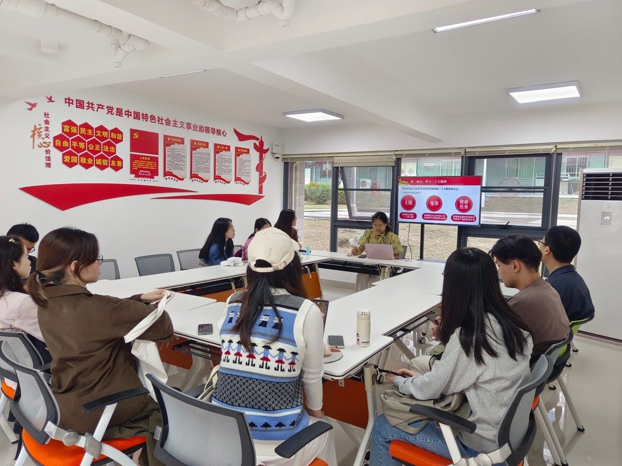 接着田梦怡带领大家共同领会了过去五年的工作和新时代十年的伟大变革。党的十九大以来的五年,是极不寻常、极不平凡的五年。五年来,以习近平同志为核心的党中央,高举中国特色社会主义伟大旗帜,全面贯彻党的十九大和十九届历次全会精神,团结带领全党全军全国各族人民,统揽伟大斗争、伟大工程、伟大事业、伟大梦想,有效应对严峻复杂的国际形势和接踵而至的巨大风险挑战,以奋发有为的精神把新时代中国特色社会主义不断推向前进,攻克了许多长期没有解决的难题,办成了许多事关长远的大事要事,推动党和国家事业取得举世瞩目的重大成就。新时代的十年里,我们取得成就主要可以归纳为以下六个方面:取得了“两个确立”重大政治成果、党在革命性锻造中更加坚强有力、胜利实现全面建成小康社会目标、维护国家安全能力显著提高、我国国际地位显著提升、我国制度优势更加彰显。