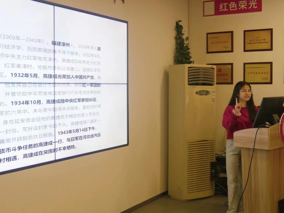 课堂伊始,主讲人以“货币从哪里来”“财产如何保管”等多个趣味盎然、贴近生活的小问题引起了小朋友们的踊跃竞答。热烈的讨论过后,主讲人将时间从当下回溯到九十多年前,将我党从白手起家到建立起一套完善资产存储制度的历程娓娓道来。在此过程中,福建籍烈士、我党杰出的红色金融家高捷成起到了举足轻重的作用。他从读书救国的有志青年,逐步成长为边区政府的理财管家,首创红军会计制度;在夹缝中发展中国红色金融事业,成为投身革命的红色银行家,制造和发行了冀南币;与敌人开展货币战、贸易战,栽培了一大批金融人才。在壮烈牺牲前,他于家书中表其心志,“在这六年中……历尽一切千辛万苦……无非为的是挽救国家的危亡,志向所趋,海浪风波在所难阻”。