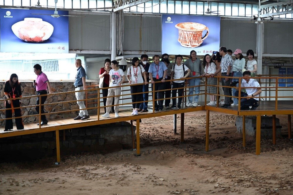 接着中文系一行来到平潭国际南岛语族考古研究基地,深入了解平潭几千年的发展历程、海峡两岸同根同源的历史源流、南岛语族的起源与扩散等中华文化传播的轨迹脉络。党员们跟随讲解员共同了解基地的建设情况,并结合自身研究方向寻找合作契机。