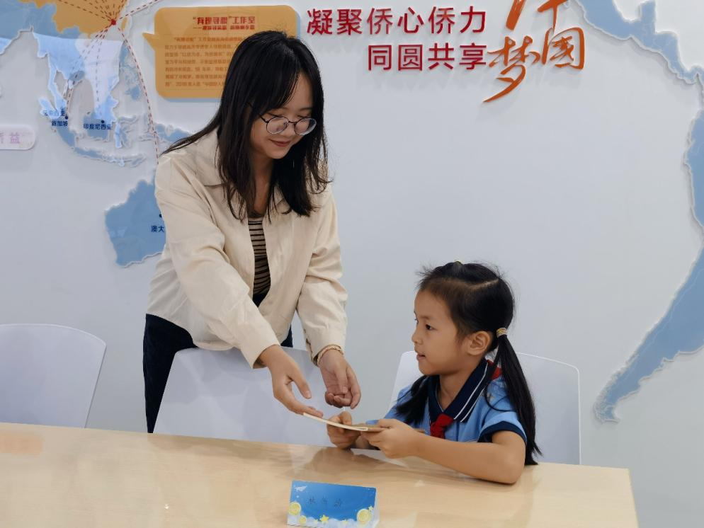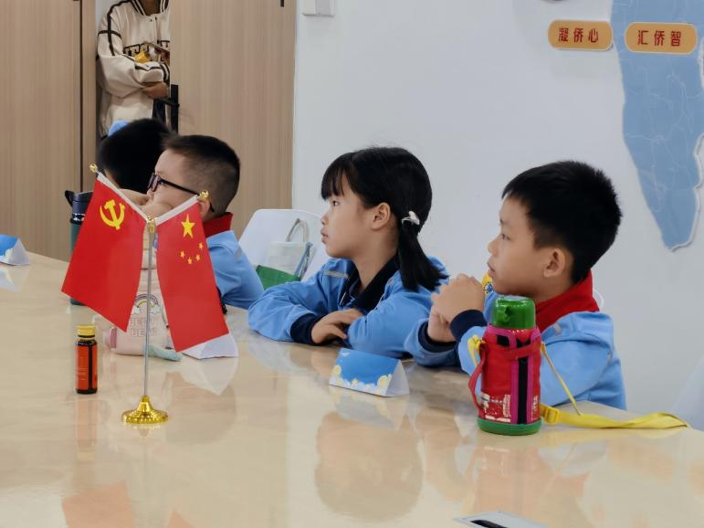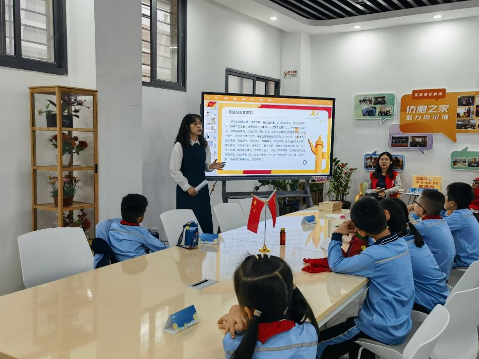 主讲人和小朋友们共同阅读了施能杞先生感人至深的家书,感受施能杞先生远大的政治抱负和伟大的胸襟胆魄。家书朗读结束,主讲人带领小朋友们一同感悟、分析家书中提及的事件。在课堂的尾声,主讲人带领小朋友们回顾总结了今天的课堂内容,动情地说道:“我们要永远铭记这些身居海外、心系家国的华侨先辈,传承他们一片真挚的爱国情怀,为实现中华民族伟大复兴的中国梦贡献属于我们每个人的青春力量!”
