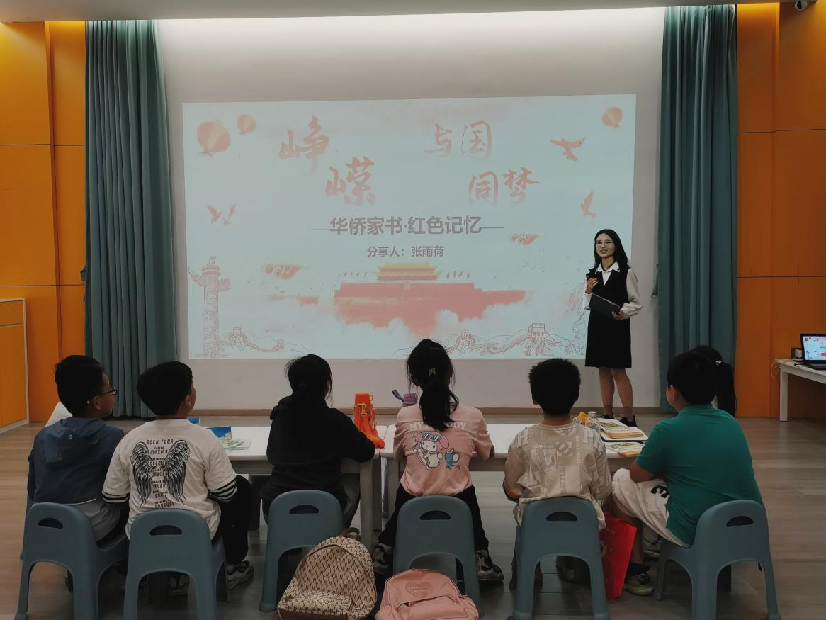 次日,支部携莲龙社区,于“童趣小书虫绘本阅读课程”活动机构开展了“红色家书”第六期活动,支部党员张雨荷、朱思琦、曾倩将爱国华侨施能杞的侨批故事分享给了莲龙社区的孩子们。张雨荷同志担任主讲人。
