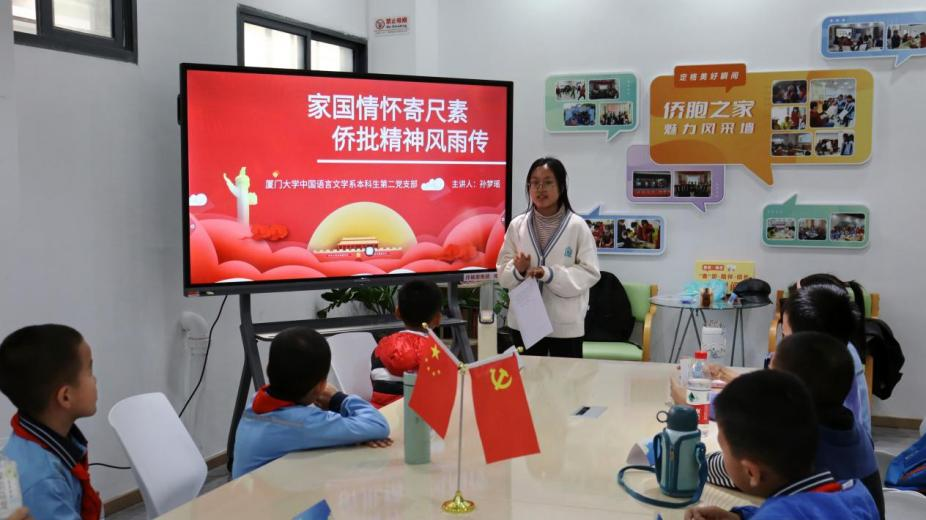 11月18日,中国语言文学系本科生第二党支部携演武社区,于演武社区活动中心开展了“红色家书”第七期活动,支部党员孙梦瑶、文静、郑瀚如带领演武社区的孩子们一起学习了爱国侨批介送员郭岱连、康玉赋的故事。孙梦瑶同志担任主讲人。