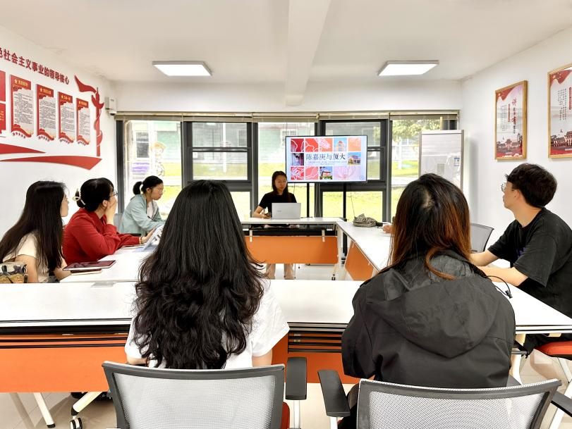 2024年4月27日,中文系硕士生第二党支部在厦门大学学生公寓海韵9党团活动室组织召开“嘉庚精神探微索隐”学习研讨会。支部骨干赖叔青进行领学发言,与会支部成员参与研讨交流。