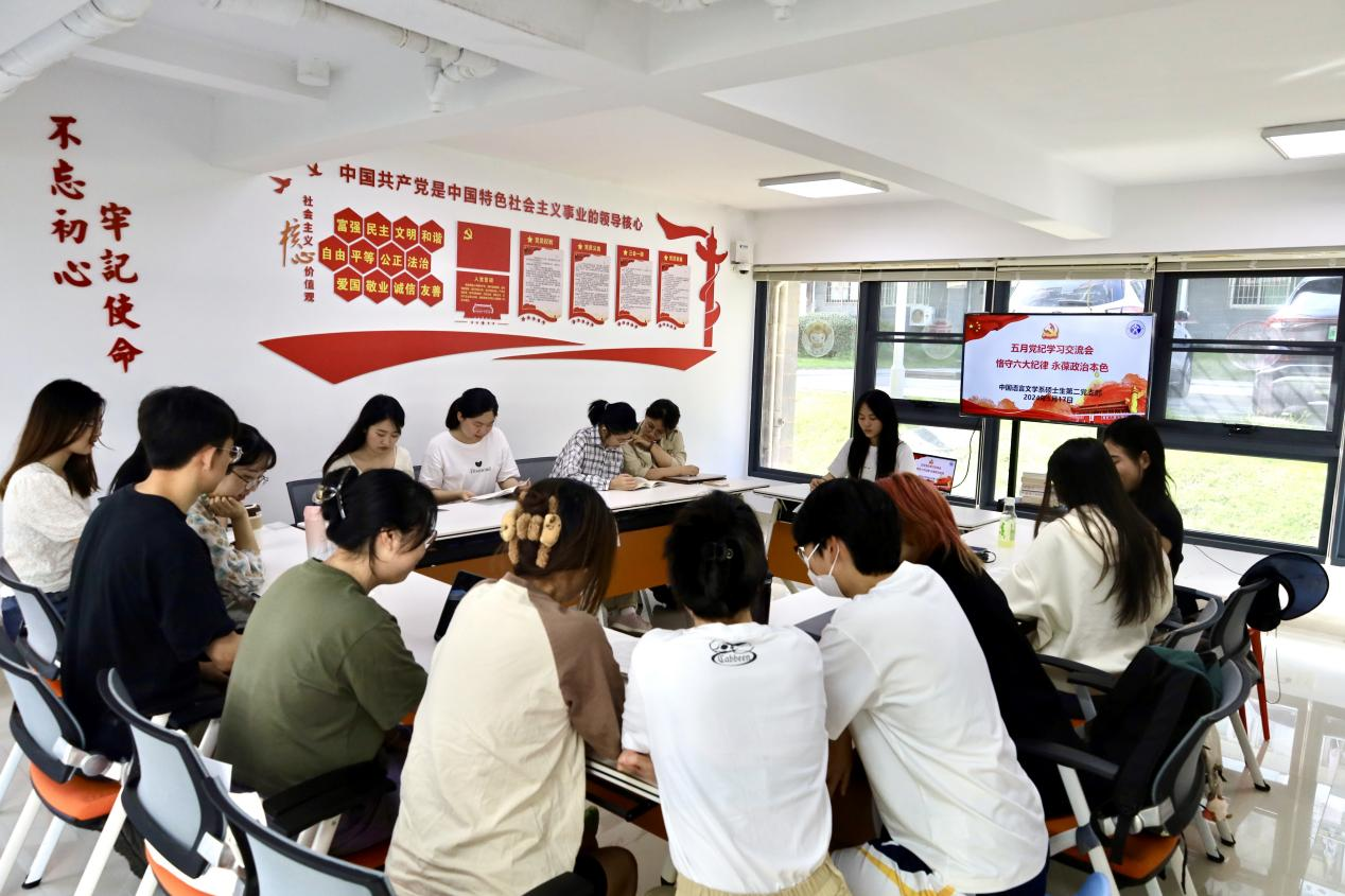 5月17日下午,中国语言文学系硕士生第二党支部以“恪守六大纪律 永葆政治本色”为主题开展五月“固定党日+”活动暨党纪学习教育交流会,活动由支部书记曾婷颖同志主持。