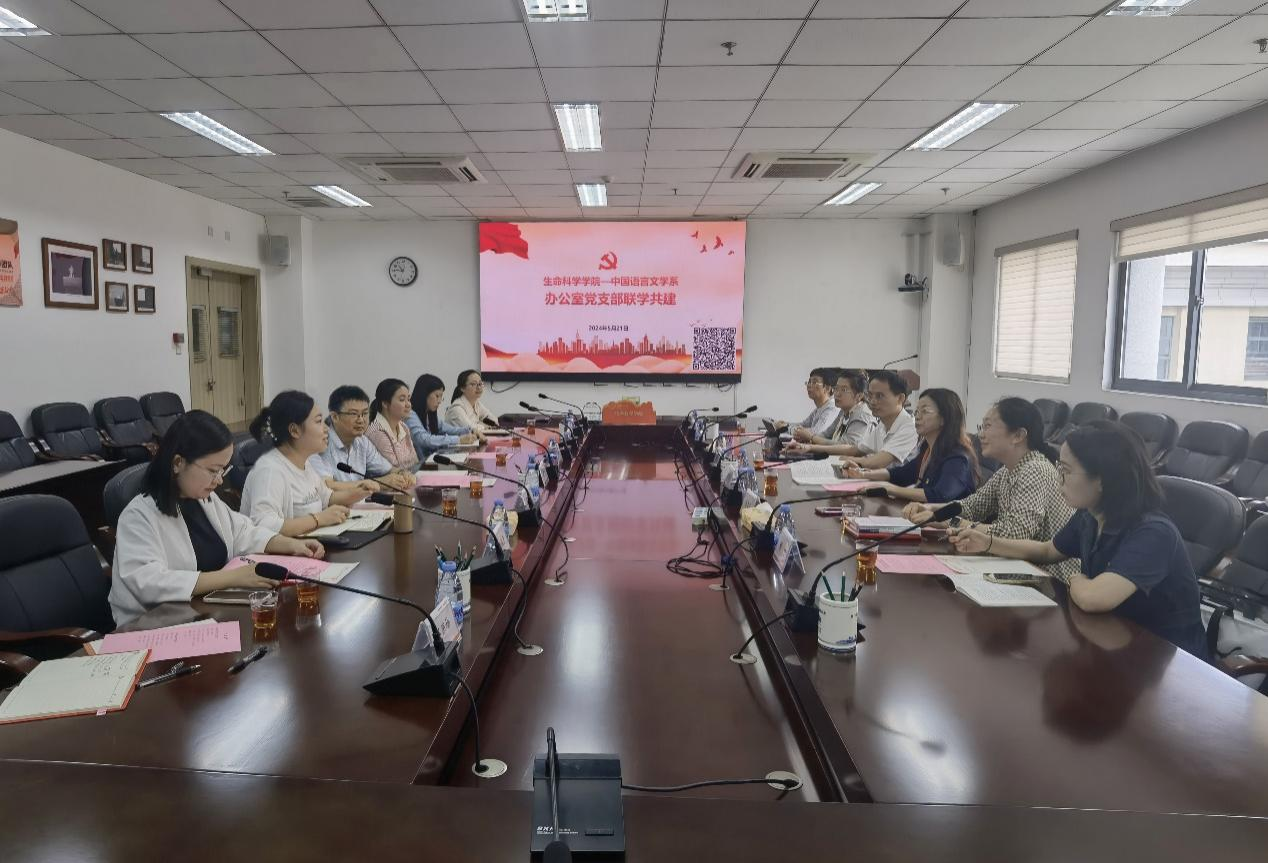 为深入学习习近平总书记关于党纪学习教育的重要指示精神,强化纪律意识、规矩意识,不断把党纪学习教育引向深入,进一步发挥党建引领作用,探索党建工作新思路,5月21日,生命科学学院办公室党支部与中国语言文学系办公室党支部,以“党建引领聚合力,联学共建促发展”为主题,开展联学共建交流会。生命科学学院党委书记马进龙、中国语言文学系党委书记黄宇霞和双方办公室党支部成员参加交流会,会议由生命科学学院办公室支部书记吴佳蓓和中国语言文学系办公室党支部书记哈飞飞共同主持。