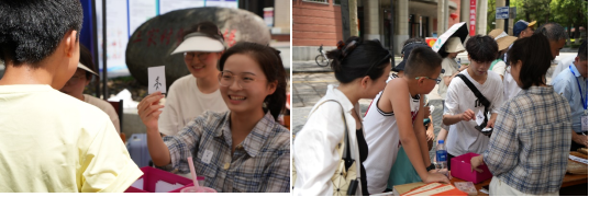 今天的古文字科普活动对我来说是一次非常新奇的体验,第一次以传播者的角色向他人去介绍古文字的相关知识,真正体会到了学以致用的魅力。在本次活动中我主要负责猜古文字字形的小游戏,出乎我意料的是许多人都对古文字字形感兴趣,参与者的身份非常多元,很多人都表示对汉字源流很好奇。今天参与者们的反馈也让我对未来古文字面向社会的进一步传播产生很大信心,希望未来我们能够有更多向大家讲述汉字故事的机会。