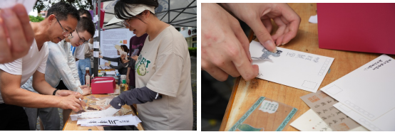 紧接着,同学们将古文字吉语亲手描摹到明信片上,贴上甲骨文装饰贴纸,让亲朋好友能收到来自厦门大学的来信。大家不仅体验了古文字的书写乐趣,还传递了对亲友的深深祝福。