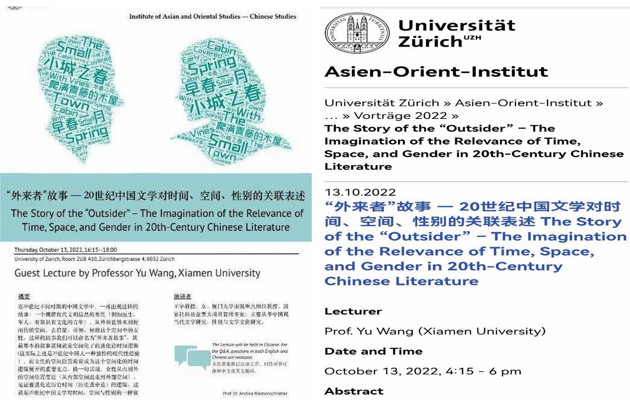 苏黎世大学“亚洲与东方研究中心”网站上讲座海报及讲座报道截图(https://www.aoi.uzh.ch/de/institut/events/guestlecture/2022/wang.html)