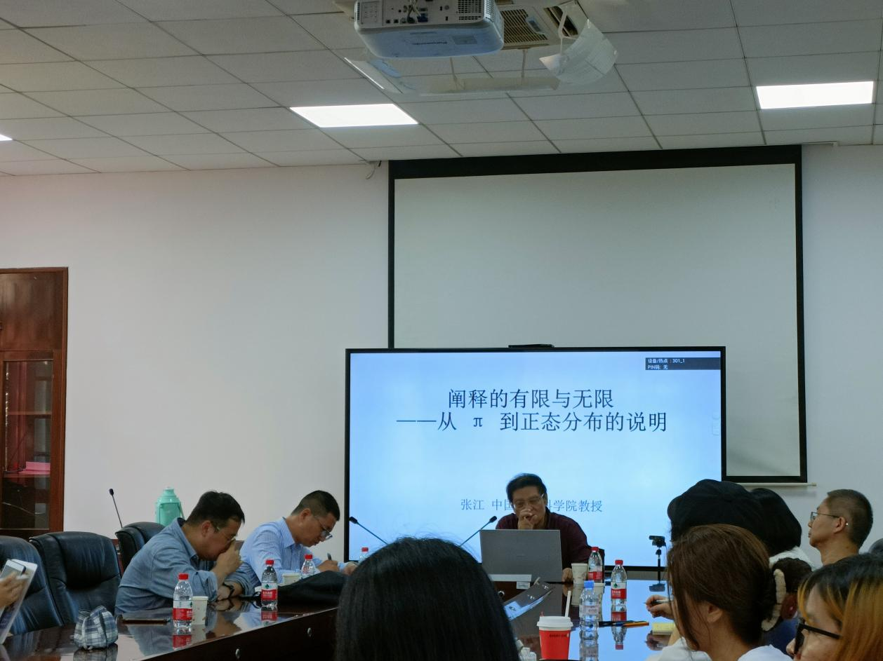 2023年11月6日上午,中国社会科学院大学阐释学高等研究院院长、中国文学批评研究会会长、《中国文学批评》杂志主编张江教授受厦门大学中文系之邀,在厦门大学思明校区南光一320会议室举行题为“阐释的有限与无限——从π到正态分布的说明”的讲座。此次讲座由厦门大学中文系副系主任徐勇教授主持,中国社会科学杂志社文学部主任张跣教授、中国社会科学杂志社文学部副主任马涛老师、厦门大学中文系苏琼教授出席,中文系本、硕、博学生到场聆听。