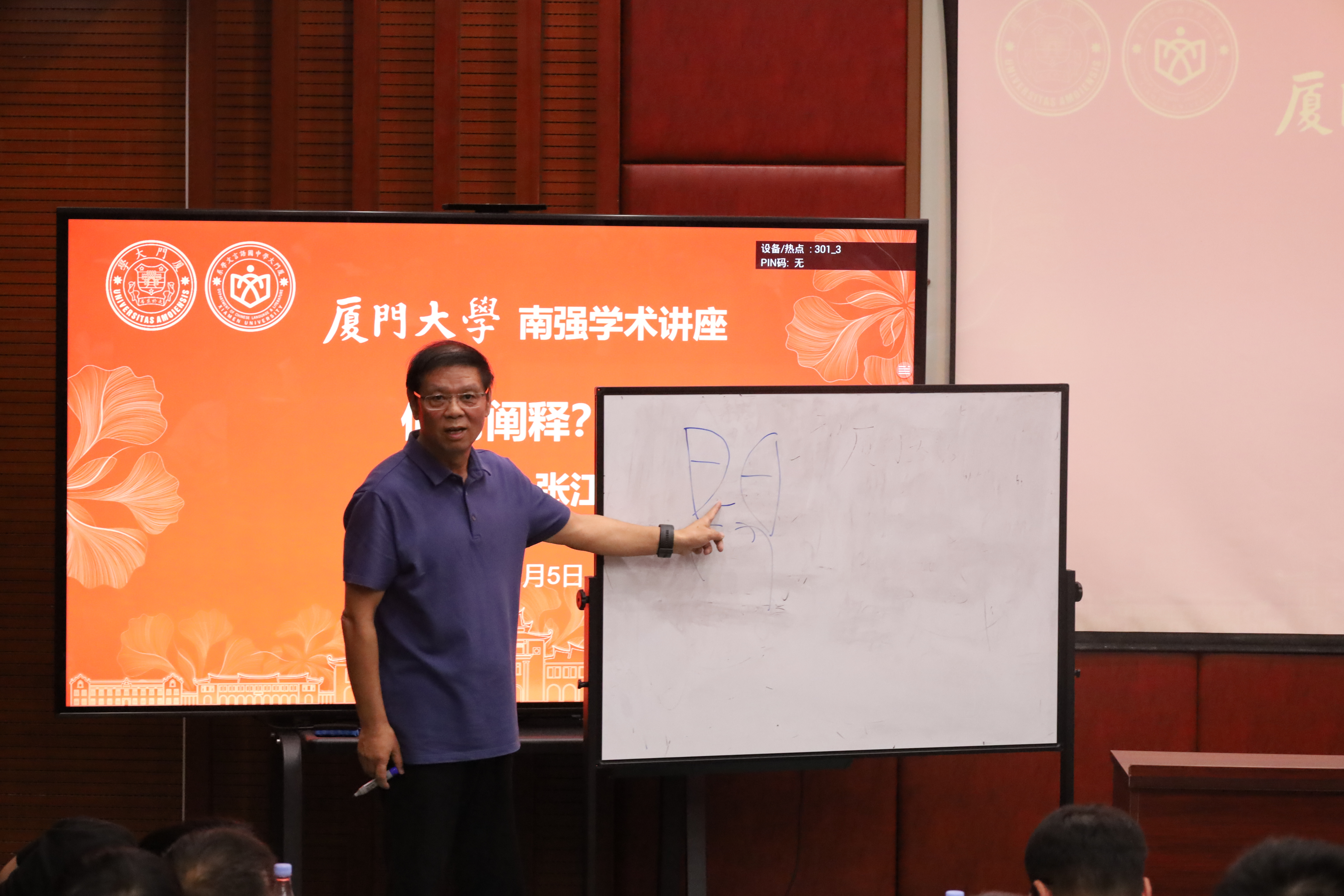 11月5日晚,全国哲社规划领导小组文学专家组组长,哲学博士,中国社会科学院大学阐释学高等研究院院长、中国文学批评研究会会长、《中国文学批评》杂志主编张江教授应邀做客我校“南强学术讲座”(第1214讲),在南光一101报告厅做题为《何为阐释?》的精彩讲座。厦门大学党委书记张荣教授、《中国社会科学》杂志社文学部主任张跣教授、《中国社会科学》文学部副主任马涛老师、厦门大学社科处处长潘越教授等专家学者出席,中国语言文学系百余名师生到场聆听。讲座由中国语言文学系党委书记黄宇霞主持。