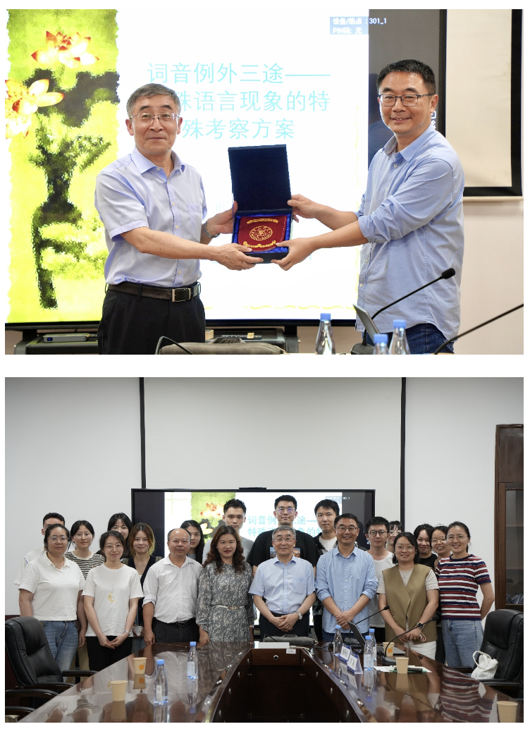 最后,李焱教授为邢向东教授颁发“南强学术讲座”纪念牌。本次讲座在同学们热烈地掌声中圆满结束。