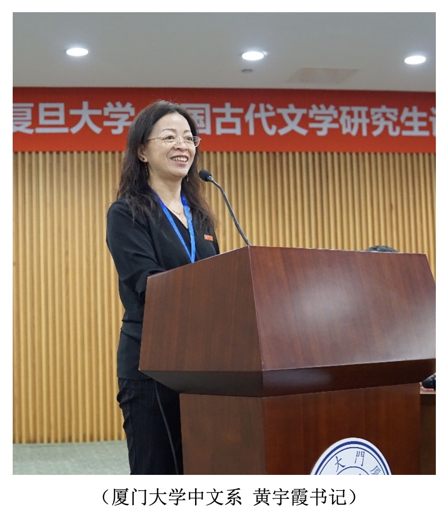 在致辞环节,厦门大学中国语言文学系党委书记黄宇霞老师首先致辞。她简要介绍了自1921年厦门大学建校以来中文系的发展历史,回顾了厦大中文一百余年来所走过的光辉历程,希望这次论坛成为厦大中文系向复旦中文系学习的一个良好契机,希望厦大的老师和同学们能充分利用好这一论坛,为重振厦大中文的辉煌而努力。