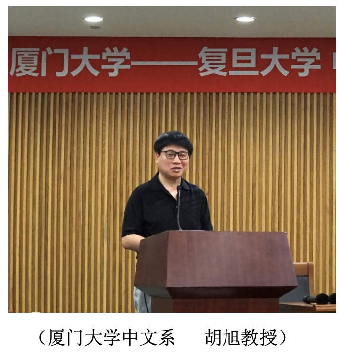厦门大学中文系胡旭教授在致辞中,向厦大的同学们介绍了复旦中文系此次带队的四位老师卓越的学术成就,并简要回顾了此次论坛的筹备过程,向大力支持论坛举办的厦大中文系领导,以及负责具体筹备工作的教研室同仁表示感谢,希望同学们能诚恳地、热烈地、精诚地进行交流,祝愿此次论坛取得圆满成功。