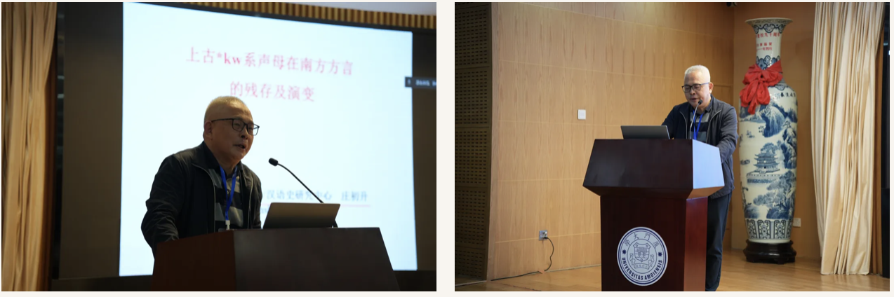 庄初升教授以“上古*kw系声母在南方方言的残存及演变”为题,探讨了上古汉语中kw的音韵学问题,提出kw中的w不应被视为介音,而是声母的描述性成分,且进一步讨论了kw在南方方言中的产生和变化以及唇齿化软腭音的性质,强调kw组和k组在吴语中的分立,这在解释方言共时差异和历时演变中起着重要的作用。