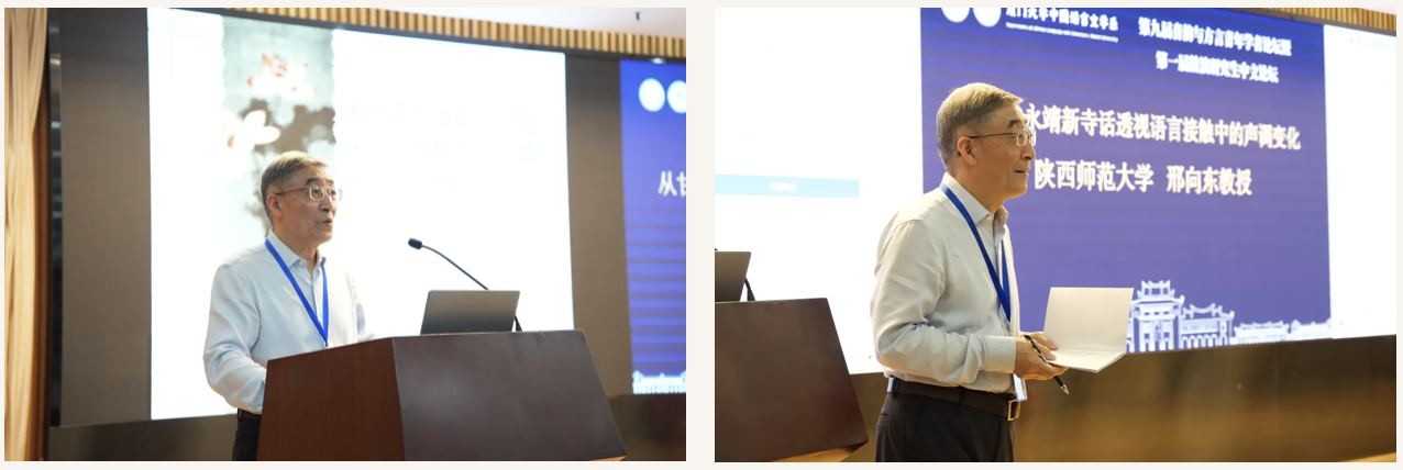 邢向东教授做题为“从甘肃永靖新寺话透视语言接触中的声调变化”的汇报。他以甘肃临下州有靖县新寺话为例,介绍了甘肃永靖新寺话声调和语法特点,并在甘青河湟方言已有研究的基础上,从语言接触角度,论述该区域语言声调与语法的平行演变关系。