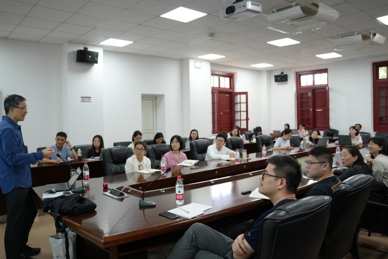 5月8日上午,美国加州大学洛杉矶分校(UCLA)亚洲语言文化系教授、中文部主任陶红印教授在中国语言文学系南光楼320会议室做题为“重复与创新:从日常会话到语言哲学的思考”的精彩讲座。本次讲座由乐耀教授主持,彭欣副教授、蔡淑美副教授、黄晶助理教授、杨望龙助理教授和语言学方向学生到场聆听。