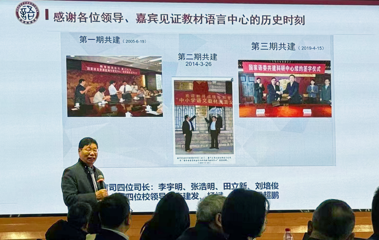 厦门大学国家语言资源监测与研究教育教材中心主任苏新春在会议上做了工作汇报,展示了中心在2024年取得的成绩以及未来的发展规划。苏新春表示,中心将继续深入开展教育教材语言相关研究,为国家语言文字事业发展提供更多智库支持。