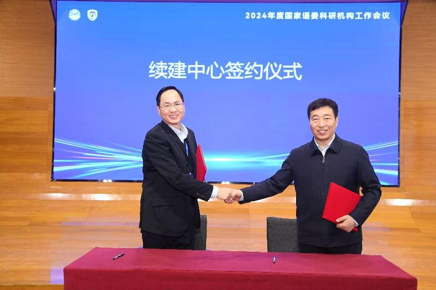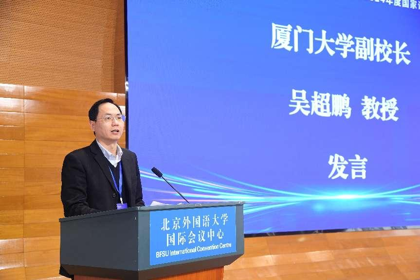 2024年12月25日—26日,2024年度国家语委科研机构工作会议在北京外国语大学国际会议中心隆重举行。全国30多所高校、科研院所代表参加会议。12月25日上午,全体参会人员现场观看了国家语委科研工作会议实况,会上教育部党组成员、副部长何光彩出席会议并发表重要讲话。厦门大学党委常委、副校长吴超鹏教授就“合作共建厦门大学国家语言监测与研究教育教材中心,加强有组织科研”做了主题发言。厦门大学与教育部语言文字信息管理司成功签订了国家语言监测与研究教育教材中心第四期共建协议。厦门大学中国语言文学系党委书记黄宇霞参会,并和语信司相关领导、其他兄弟高校就中心下一个周期的发展规划、中文系学科建设与国家语委科研机构的建设如何相互促进、协同发展进行了深入交流。