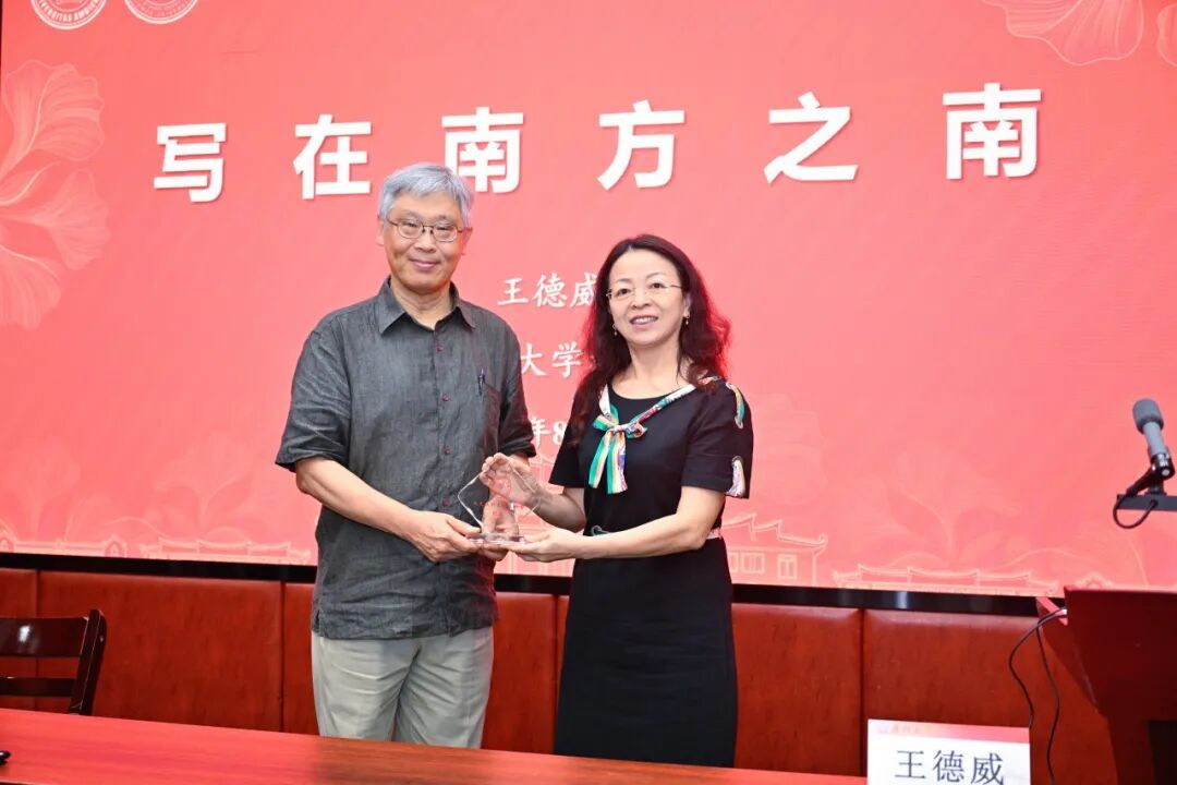 最后,中国语言文学系党委书记黄宇霞为王德威教授颁授了“至善大讲堂”纪念牌,并再次表达了师生的诚挚感谢。讲座在热烈的掌声中落下帷幕。